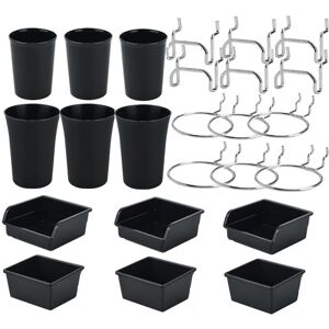[Convenient Metal Hooks] More easy to install or disassemble these pegboard sets, not need to access the back of your pegboard, accurate hardware size. Universal Fit for 1/8 inch and 1/4 inch pegboards with 1 inch spacing. With angled hooks attachment, more stable locked into pegboard holes, bins and cups always sit on the board well, never falling out when usage. [Heavy Duty Multi-pack] Bins, trays, and cups made from high-density hard plastic, hooks, and hoops made from high-quality thickening Metal, sturdy and , anti-rust plated finish. Note: the pegboard is not included! [Utility Pegboard Holders] These multipurpose storage holders could be arranged in a compact style, achieving great space-saving demand, get effortless accessible for a variety of small hardware, no more searching for things among the clutter. [Works Widely] Perfect for organizing pliers, drills, pencils, painting brushes, wrenches, screws, nuts, bolts, nails, clips, and other arts and crafts accessories. Redesign