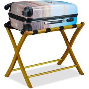 If you travel a lot, the wooden luggage rack is extremely practical. Instead of having to bend down every time, you can access your luggage comfortably from a sitting position. The rack is quick and easy to assemble using the supplied assembly kit. When not in use, the carrier folds away to save space. For hotels and guest houses that want to offer their guests maximum comfort, the luggage rack is an absolute must. Luggage Rack Details - Overall dimensions H x W x D: approx. 54.5 x 66 x 44 cm - Folded dimensions H x W x D: approx. 68 x 66 x 8 cm - Strap width: approx. 5 cm - Weight capacity: approx. 30 kg - Weight: approx. 2.2 kg - Materials: Polyester, wood - Various colours available Suitcase Stand - Fur back support when packing and unpacking your suitcase - Folds away for compact storage or transport - For hotels, bed and breakfasts or holiday homes - X-frame for sturdiness, no matter how heavy your luggage - Useful for moving boxes, laundry baskets, etc.