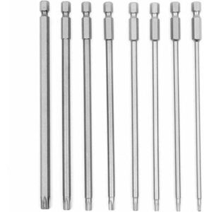 High Quality: S2 steel material which is durable, anti-shock and tough, a commonly used material in hardware.Magnetic: Strong magnetic, good workmanship, can be firmly fixed on screwdrivers and suck screws easily by using it.Exquisite Workmanship: Each edge can be precisely locked screws, no damage to the screw, and screwdriver head.Length: 150mm/6inch. Size: T8, T10, T15, T20, T25, T27, T30, T40. Shank Type: 6.35mm(1/4") hex.Can be used for manual electric screwdriver, screwdriver, electric drill, air and other tools.Specification:Material: High Quality S2 SteelHex Shank Size: 1/4"(6.35mm)Length: 150mmSize: T8, T10, T15, T20, T25, T27, T30, T40Content:8PCS x 150mm Magnetic Head Torx ScrewdriverNote: This does not include other things, the color is based on the first picture, and the other pictures only show the effectDue to the differences between different monitors, the picture may not reflect the actual color of the item.Due to manual measurement. Please allow the deviation. Thank