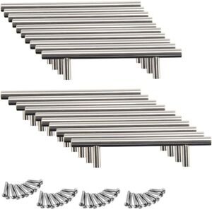Size: 150x32mm, Bar Diameter: 12mm, Hole Center Distance: 96mm. Material: 201 stainless steel. The surface is chrome-plated and brushed. Package Content: 20 x Door Handles, 40 x Mounting Screws, Easy to install. These modern furniture pieces are ideal for various cabinets and dressers in the kitchen, living room, dining room and bedroom. The handles are of high quality and offer a particularly beautiful and elegant shape.