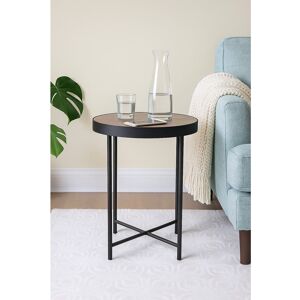 Give your decor a new look with this Hayashi Side Table. A cross-shaped metal base and round wooden top add a fashionable and airy look to any living space. Made from sturdy metal and vintage effect wooden top, the Hayashi Side Table stands ready to make a strong impact in your space. This piece boasts a crossed base and a simple round top with a planked design that looks equally good on its own or fitted with decorative accents. 17 Stories