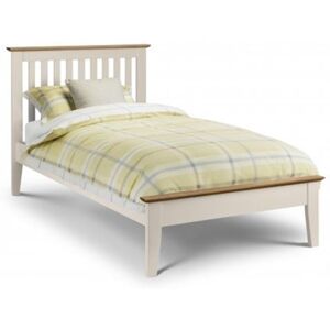 A stone white lacquered finish bed frame with solid American white oak edging on the headboard and foot end. This bed frame also features a sprung slatted base to prolong mattress life and increase comfort. This bed frame is also available in Single 3ft and Double 4ft 6".