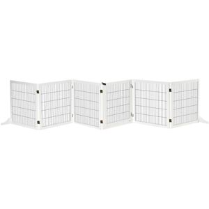 Suitable for small and medium dogs - shoulder height less than 48cm. Assembly required. Easy access: Pets can pass through the middle. Comes with a safety lock for security. Its slanted design stops pets from feeling caged in. Six flexible panels: Gate can be folded into different shapes, perfect for different-sized hallways, doorways and staircases Solid construction: Made from wood and steel, it's durable and maintains a strong upright position, thanks to the sturdy support feet Complex Colour Names: magnolia, blue, baby powder, gray, light gray, timberwolf Gemini Colour: white PawHut