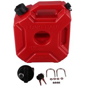 specification: color: red Material: plastic Capacity: 5 liters feature: Made of high hardness plastic, oil resistant, anti-corrosion, anti-static, anti-ultraviolet. Suitable for motorcycle frames. Designed with ventilation holes to prevent negative pressure backflow. Precaution: Mixed liquids must not Package Contents: 1 * fuel tank 1 * Bracket lock with accessories Only the above package content, other products are not included. Note: Light reflection and different displays may cause the color of the item in the picture a little different from the real thing. The measurement allowed error is +/- 1-3cm.