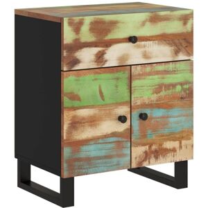 This vintage-style bedside cabinet, made of solid reclaimed wood, will make a timeless addition to your home. Thanks to the strong steel frame, the wooden cabinet is very steady and durable. It has a drawer for keeping smaller items organised and within reach, and a compartment with door which provides additional storage space. The nightstand can also be used as a side cabinet or telephone stand. The bedside cabinet is made of recycled wood, which means every piece of furniture is unique and slightly different from the next. Furniture made of reclaimed wood has the characteristics of different woods, like teakwood, acacia, mango wood, saal wood, etc. Reclaimed wood is solid, stable, durable, and beautiful. Signs of wear and visible grain structure give each piece its own history and unique look. The bedside cabinet is fully handmade, and the craftsmanship adds to its spectacular retro style. Every step of the process is carried out with the greatest care, be it recombining, polishing,