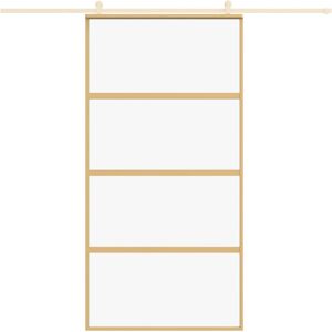 Create a graceful transition from one space to another with this sliding aluminium door. This door with slide design is a perfect solution for space-saving opening. This sliding door features 5 mm thick safety glass which is supported by 20 mm thick corrosion-free aluminium frame with powder coating, which is durable. Additionally, the glass panel is easy to clean and maintain. The door can only be mounted in combination with sliding door hardware kits. You can find the matching sliding door hardware kits in our shop (SKU: 145263), which need to be purchased separately. For the installation way, you can check our installation manual of the door and sliding hardware kits. Material: Aluminium, ESG glass Surface treatment: Power-coated Door thickness: 20 mm Glass thickness: 5 mm Anti-rust Mounting accessories are included Hanging wheels and top sliding rails are excluded Assembly required: Yes Delivery includes: 1 x Door 1 x Door stopper Symple Stuff Door Size: 205cm H x 76cm W x 4 cm D, Finish: Gold
