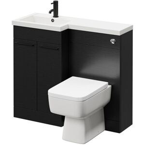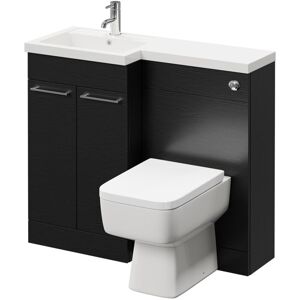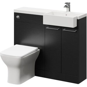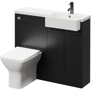 Model Number: WDB92413 Black bathroom interiors are contemporary and stylish, they are also a great way to personalise your home. If you're thinking about a bathroom upgrade, choose a dark wood toilet and vanity unit suite. Introducing the Napoli Combination Nero Oak 1000mm Vanity Unit Toilet Suite with Right Hand Square Semi Recessed 1 Tap Hole Basin and 2 Doors with Matt Black Handles, an ideal way to modernise your home bathroom. The unit comprises a modern white toilet with concealed cistern, a semi-recessed basin vanity, and two doors underneath with storage for toiletries. Recessed basins are convenient and save space, on these units they have a single pre-drilled tap hole in the centre that allows you to choose your own taps. Buy yours today with our convenient free click and collect service. Key features Two soft-closing doors with elegant handles Basin comes with one pre-drilled tap hole Stylish finish adds a touch of luxury Provides ample storage space for your bathroom