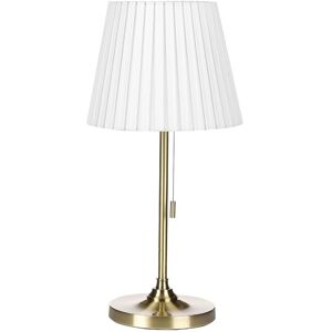 Classic Living Room and Bedside Table Lamp. Complete the look of your interior with this simple yet chic table lamp. Its fabric shade in the empire shape creates a nice and soft ambient light that will beautifully illuminate the whole room in the evening. The metal base guarantees stability of the piece and the pull switch adds an elegant touch to the design. Details: Product Type: Table Lamps Style: Traditional General Color: Gold, White Material Type: Metal Main Material: Iron Additional Material: Fabric Base Material: Iron Shade Material: Fabric Wattage: 40 W Finish: Matt IP Protection Code: IP 20 Light Bulbs Required: 1 Voltage rating: 230 V (50 Hz) Dimensions: Base Dimensions: 16x16x5 Cord Length: 180 cm Depth: 23 cm Width: 23 cm Height: 48 cm Weight: 1.3 kg Offer Includes: 1 x Table Lamp, Not Included: Light Bulb Key Features: Works Splendidly as an Ambient Light, Classic Design, Perfect for Both a Bedroom and a Living Room, Exceptionally Low-Maintenance, High-Quality Materials