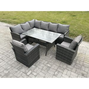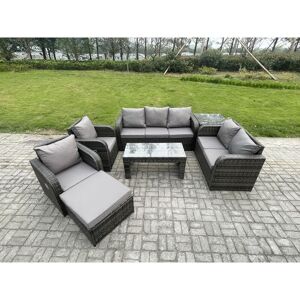 This 6 pieces deluxe Garden furniture set adds decoration to your courtyard, deck, backyard, porch, and even swimming pool, using high quality PE rattan and durable galvanized steel construction, which can withstand the bad weather in the UK and can be easily combined into different configurations according to your needs at any time. Set Dimensions: • 2 x Fully Assembled small footstools:40L x 40w x 34H cm • 1 x Reclining Chair :74W * 67 D * 79 H cm • 1 x Love Sofa : 124W x 67D x 79H cm • 1 x 3 Seater Sofa :177W x67D x79H cm • 1 x Rectangular Dining Table :110L x 70W x 70H cm Dark grey mixed rattan with dark grey fabric .Color may some difference due to light or monitor .we are unable to return the item due to color problem . The armchair are adjustable, you can adjust the inclination of the chair back from 90°-130° through the button . Items Comes Flat Packed And Easy Assemble,Sturdy Galvanized Steel Tube Metal Frames With Powder Coating To Prevent The Rust Flat PE Rattan Completely