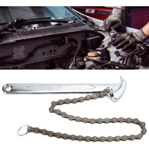 1、9 inches of chain is more than enough for working, and it is adjustable for loosening and tightening. 2、Thanks to heat treatment, the high-quality steel has excellent hardness up to HRC60. 3、This chain wrench fits up to 6.1 inches in diameter, so it works perfectly as a filter tool, pipe fitting tool, etc. 4、The firmly connected chain ensures strong holding and gripping, which promises perfect working performance. 5、The coating material makes the wrench more durable and also prevents it from rusting.