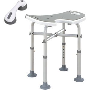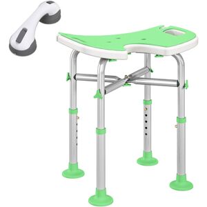 Made for assistance in the shower or bath, this chair from HOMCOM is perfect for the elderly, injured or those who require extra help whilst showering or bathing. Adjustable to six different heights to find the most comfortable and safe position to sit. The bath chair is finished with a curved seat and back to keep you comfortable and supported. Seat holes to prevent water build up, finished with a top handle to carry easily. Specifications: ● Colour: Green, White ● Material: Aluminium Alloy, HDPE, EVA ● Overall Dimension: 51.5W x 49.5D x 68.5-81H cm ● Seat Size: 51.5W x 31D cm ● Seat Height: 36-48.5 cm ● Back Height to the Seat: 34 cm ● Adjustable Height Per Gear: 2.5 cm ● Max Load: 136 kg ● Certification: UKCA+CE ● Item Label: 713-118V00GN Features: ● Six-position height to find a level right for you ● Shower head holder on the side is convenient for when sitting down ● Drainage holes in seat so shower water doesn't build up ● Aluminium frame is strong and supports you, non-slip
