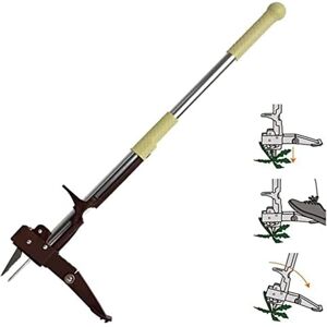 【Stand Up Weeder Puller】-- If you are obsessed by dandelions and other weeder in your garden/lawn, If you are disappointed with any other stand up weeder pullers which have a unsteady poor made shaft, try this one you will not regret for it. We upgraded with thick 𝐇𝐁𝐖300 stainless-steel poles, never bend or rusted, this is a no joke hardcore garden tool can stand for tons of strong force by strongest man.【Most Efficient & Labor Saving】Protect your back and save time by using our garden stand up weeder which has a 100 cm long shaft. The folding foot plate adjustable is also suitable for the slope. Step on the pedal, push down the handle into the ground directly and effectively.【Multifunctional & Egonomics】: Ergonomically designed handle enables you to pull up a weed and dispose of it swiftly, that grab the weed's root from multiple directions to pull it out of the ground. No longer need to use several hand tools to remove any type weed (dandelions, flowers, thistles and others more)