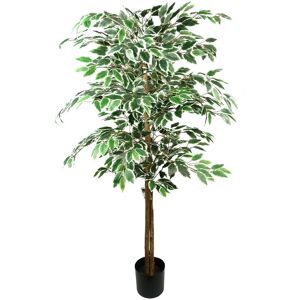 150cm Artificial Ficus Tree, boasting 1008 silk leaves. This exquisite piece stands 150cm tall x 80cm x 80cm when arranged as shown in our pictures. The plastic weighted pot measures 17cm (w) x 14cm (h), adding to the luxurious appeal of this premium quality artificial plant. It comes potted in a plain black plastic pot and is ready to display, but for an even more impressive look, consider placing it inside a larger decorative planter. With no watering required, this low-maintenance beauty will benefit from the occasional dusting or a gentle hosing off in the garden. Its botanically accurate foliage makes it highly realistic, and it comes ready to display, requiring only a simple arrangement upon delivery to achieve a stunningly lifelike appearance. The Seasonal Aisle