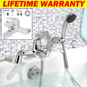 Description: *Includes Wall Bracket, Shower Hose and Handset *Easy to Install and Maintain *Manufactured from solid brass with a chrome finish *1/4 Turn Ceramic Disc Technology *High Polished 3 Layer PVD Mirror Finish *Distance between 2 legs - 150 mm *Minimum recommended 0.5 bar water pressure, best results achieved with 1.0 bar Package Contains: *1 x bath filler tap *1 x handheld shower head (3 modes water spray) *1 x 1.5m hose *1 x wall bracket