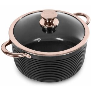 Presenting distinctive design features, the Tower Linear Rose Gold combines beauty with durable and reliable performance. The specially created, superior Cerasure non-stick coating requires only a small amount of oil for a low fat cooking method and easier cleaning. Structured from thick 3mm quality aluminium, this 24cm casserole dish can be taken from stove to oven effortlessly; with its Linear designed heat-resistant body being able to withstand temperatures of up to 200C. Featuring a 4 litre capacity, this casserole pan is perfect for family cooking. The stainless steel rose gold plated handles offer all the durability and control you need. It is suitable for use across all hob types and provides even heat distribution thanks to the bonded steel base. Hand wash only to maintain the quality finish. This Linear casserole dish comes with a 5 year warranty, which provides added peace of mind in the event of fault.
