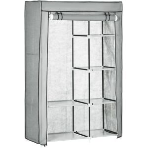 Feature: 8 Shelves and 2 hanging rods for hats, sweaters and folded clothes Dust-proof with non-woven fabric cover and zipped door Roll-up door panel with Velcro ties Stable shelves, PP connectors and steel frame for durability Space-efficient design, suitable for any room Raised base keeps clothes dry Simple assembly required Specification: Colour: Cream White Material: Steel, Non-woven, PP Overall Dimension: 125W x 43D x 162.5H cm Middle Shelf Size: 39.5W x 39.5D x 37.5H cm Left/Right Shelf Size: 39.5W x 39.5D x 116.5H cm, 39.5W x 39.5D x 37.5H cm Hanging Rod Length: 39 cm Hanging Rod to the Right Top Shelf Height: 112 cm Leg Height: 5cm Weight Capacity: 55 kg (total), 5 kg (shelf). 15kg (hanging rod) Item Label: 850-211V00CW 1 x Fabric Wardrobe 1 x Manual