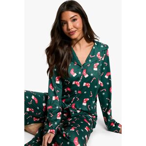 Festive all-over Christmas print featuring Santa hats and candy canes Long-sleeved top with notched collar for a classic pyjama look Relaxed fit trousers for ultimate comfort Soft jersey fabric for a cosy night's sleep Versatile two-piece set perfect for lounging and sleeping Embrace the holiday spirit with this charming Christmas-themed pyjama set. The playful print adorned with Santa hats, candy canes, and twinkling stars adds a touch of whimsy to your nighttime routine. The long-sleeved top features a classic notched collar, while the relaxed-fit trousers ensure unrestricted movement for a restful night's sleep. Crafted from soft jersey fabric, this set offers the perfect balance of comfort and style. Whether you're curling up with a festive film, enjoying a lazy Christmas morning, or hosting a seasonal slumber party, this pyjama set is sure to become your go-to choice for cosy nights in. Pair with fluffy slippers and a warm dressing gown for the ultimate loungewear ensemble.