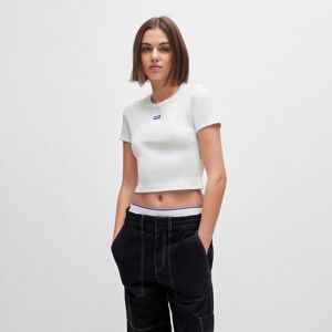 A versatile T-shirt in a cropped length by HUGO Womenswear.This slim-fit top is crafted in ribbed stretch cotton with a logo label.Features:- Slim fit.- Neckline:Crew neck.- Short sleeves.- Short length.Specifications:- Material:96% Cotton, 4% Elastane.Care Instructions:- Machine Wash Cold Gentle.- Do Not Bleach.- Do Not Tumble Dry.- Iron Low Heat.- Do Not Dry Clean.