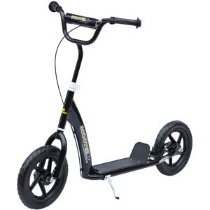 Make outdoors extra fun with this kids scooter from HOMCOM. With adjustable handlebars, it's suitable for different heights they'll be comfortable when scootering, whilst the wide non-slip foot deck keeps them perfectly balanced. Steel frame for extra stability and brakes on the front and rear wheels, bringing the offroad scooter to a swift stop when necessary. Whether it's the school run, around the park or up and down the street, the inflatable tyres ensure their ride is safe and smooth. HOMCOM Kids Push Scooter Stunt Scooter W/ 16" Tyres Adjustable Height Dual Brake in Black