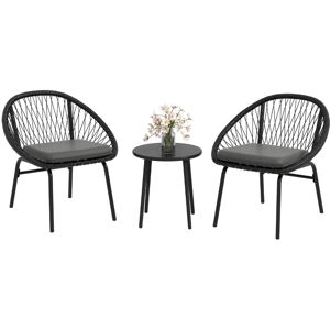 Create your personal oasis with our Outsunny garden furniture set! This garden bistro set features two trendy leisure chairs and a stylish tempered glass tea table, making it great for relaxation and socializing. Each chair is adorned with a wide seat, firm backrest and armrest, providing a cosy seating experience. Elevate your outdoor space with these bistro table and chairs, adding a touch of fun and leisure to your everyday life. Experience serenity and style like never before! OUTSUNNY 3 Pieces Garden Furniture Set with 2 Stackable Chairs, Black