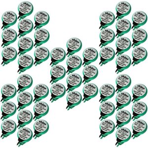 vhbw - the clever way High-quality button cell battery for use in various electronic devices such as: - model building batteries - mainboard backup batteries - solar lamps - electronic candles - bicycle computers - telephone batteries - watches - calculators - remote controls - toys - pet trackers This compatible, rechargeable button cell battery from vhbw has powerful, long-lasting cells. The high-performance cells in our batteries meet the highest quality standards. Our batteries fulfil all guidelines of operational safety. You can continue to use your previous charger. CONTENT OF DELIVERY: - 50x button cell battery TECHNICAL DETAILS: - Battery type: NiMH - Capacity: 40 mAh - Voltage: 1.2 V - Power: 0.05 Wh - Colour green - Diameter: 11.77 mm - Number of built-in cells: 1 - Number of pins: 2 - Weight: 2g - Connection: PCB connection for soldering or insertion CELL TYPE: - 1/V40H vhbw - High-quality replacement parts and accessories to prolong the service-life of your electronic
