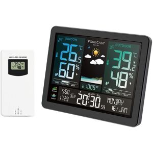 Product name: hygrometer Form: Single Face Function: Temperature Display Motivity Type: Digital Feature: Calendars Type: Alarm Clocks Display type: LCD Special features: Decoration, Thermometer, Glow-in-the-dark, Weather forecast, Calendar, step-down, alarm clock, Calendar, 24-hour indicator, Humidity measurement, Week Display, Smart Scene Mode, Month display Waterproof: No Power type: External power supply Movement type: Electronic Item number: 3566BN-NORCC Specification: 3566BN Neutral Style: Modern and simple Colour: Black Material: ABS Package Contents: 1 x sensor 1 x hygrometer 1 x USB power cable Only the above package content, other products are not included. Note: Light reflection and different displays may cause the color of the item in the picture a little different from the real thing. The measurement allowed error is +/- 1-3cm.