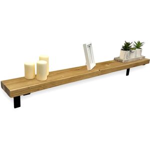 Eco-Friendly Material - Each piece of our floating shelves is made from reclaimed timber, carefully handpicked for its unique traits. Though each wood piece is unique, we believe it only adds an extra touch of charm to your furniture.Robust & Reliable - Our custom-made rustic wooden shelves are designed to bear weight once installed properly. You can choose from seated or flat-lipped black L-brackets. We provide black powder-coated brackets as standard, with screws and brackets included.Hand Crafted Shelves - Each wall-mounted wooden shelf is meticulously handcrafted, embodying more than just furniture – they are art pieces.Superior Rustic Shelves - These versatile floating shelves have ample space for books, accessories, seasoning bottles, trinkets, and more. The rustic wooden shelves, complemented by the sleek, robust black steel frames, make for an excellent addition to any room.Ideal Gift Option - These sturdy, easy-to-install, and elegantly designed shelves are a splendid addition to any home. With their capability to beautifully display collectibles, our wooden shelf boards make a perfect gift for your loved ones.Complete Kit - Includes two wall shelves, four metal brackets complete with screws, and assembly instructions. 17 Stories Size: 4.5cm H x 80cm W x 14.5cm D, Finish: Rustic Pine