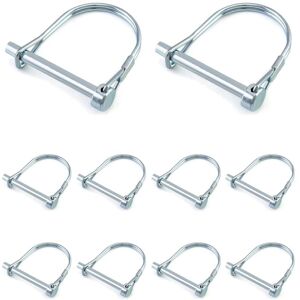 Dimensions: M6 x 50mm (Bolt Length: 50mm, Bolt Diameter: 6mm). Package includes 10 pieces. Material: The safety pin is made of zinc-plated carbon steel, which is strong, durable, not easy to deform, high wear resistance, and long service life. QUALITY: The locking pin has good elasticity and high hardness to protect your equipment, towing load, etc. The surface is finely polished, smooth, burr-free, and not easy to rust. Application: Ideal for coupling trailers, machinery, and appliances. Suitable for lawns, gardens, agriculture, trucks, for your cars, light trucks, trailers, lawn mowers, tractors, etc.