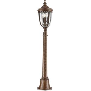 Specification Elstead English Bridle - 3 Light Large Outdoor Lamp Post British Bronze IP44, E14 Finish: British Bronze IP Rating: IP44 Height (cm): 242.6 Width (cm): 26.7 No. of Lights: 3 Lamp Type: E14 Wattage (max): 60 Weight (kg): 9.7 Class: 1 (Earthed) Bulb Included: No Description This large lamp post reflects the English countryside charm combined with the grace of a stately manor. Clear seeded glass combines a clean look with old-world charm. Finished in British Bronze. Also available in this range; Large Wall Lantern, Large Pedestal, Large Chain Lantern, X Large Wall Lantern, Small Wall Lantern, Medium Wall Lantern, Medium Pedestal, Medium Bollard, and Medium Chain Lantern.