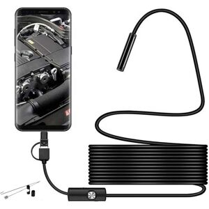 【3 in 1 USB/Micro USB/Type-C】: This inspection camera can be used on Android smartphones. 【Ultra-Thin】: The USB endoscope camera's probe is ultra-thin. We can use this endoscope in many hard-to-reach, narrow, and narrow homes or outdoors, such as HVAC, ventilation ducts, motors, air conditioners, sofa corners, bathtub pipes, toilets, etc. 【IP67 Waterproof with 6 Adjustable LEDs】: The USB endoscope has an IP67 water resistance and 6 adjustable high-brightness LED lights. When you need to find treasures or other small objects in the bathtub or pipe, the snake camera can be used anywhere underwater, which is very suitable for shower drains or any pipe invisible to the naked eye. The adjustable wheel can also help improve image brightness and clarity. 【Semi-rigid cable】: Unlike similar USB endoscopes with flexible cables, the holes using semi-rigid cables can be routed more easily into narrow places, such as air conditioners, car cylinders, narrow pipes, etc.