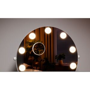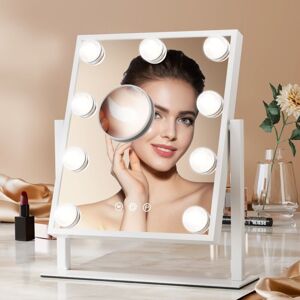 Hollywood Makeup Mirror – Experience the same luxury as Hollywood stars with this premium makeup mirror. Perfectly sized at 18.5'' in round shape, it provides a crystal-clear, wide-angle view of your entire face, ensuring flawless, professional-level makeup application. The non-slip base keeps the mirror securely in place, offering peace of mind during use. Adjustable Brightness & 3 Light Settings – Featuring flexible LED lighting, the brightness can be adjusted from a soft 10% to a bright 100%. You can also switch between warm light (3000K), cool white light (6500K), and natural light (4000K) to see how your makeup looks under different lighting conditions. Easy Touch Control – A simple tap allows you to turn the light on and off. In standby mode, the mirror emits a gentle white glow, transitioning to a soothing green light when in use. The Perfect Gift for Special Occasions – With its stylish design and practical functionality, the Heilmetz makeup mirror is a dream gift for many.