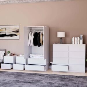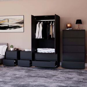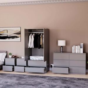 Introducing our sleek and sophisticated Denver Bedroom Furniture Set, designed to transform your bedroom into a modern sanctuary. This set includes a 2-drawer bedside chest, a chest of drawers, and a 2-door 2-drawer wardrobe, offering a complete and cohesive storage solution. Each piece in this set features a minimalist modern design, characterized by clean lines and a handle-free aesthetic that enhances any bedroom decor. The handle-free drawers and doors provide a streamlined, uncluttered look, perfect for contemporary living spaces. The 2-drawer bedside chest provides convenient storage for nighttime essentials, while the chest of drawers offers ample space for clothing and accessories. The 2-door 2-drawer wardrobe includes a hanging clothes rail, providing generous space for both hanging and folded garments, ensuring your wardrobe stays organized and easily accessible. Crafted from high-quality materials, this bedroom furniture set is built to last, promising long-term durability