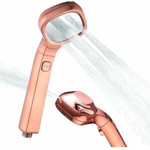 water flow modes. This hand held shower head has 4 different spray patterns which perfectly meet your different needs. The point jet sprayer is designed for a straight, powerful stream to remove tough stains. The wild rain sprayer is suitable for daily use creating large and full drops. The thin-thread sprayer provides a special soft shower experience with magical streams. The Rain&net sprayer gives you a massage experience to relax your tired body. On/off pause button. With such a compact button, you can control the switch of your water flow at will by gently pressing the button with your thumb. There is no need to adjust the water temperature back and forth with the pause button. This practical design also avoids unnecessary wastage of water when soaping up in the shower. High pressure and high quality materials. Our shower head is made of durable ABS material and also adopts electroplating technology with high pressure and tempered resistance, which will never fade, rust or wear
