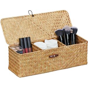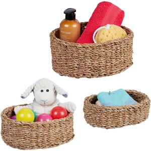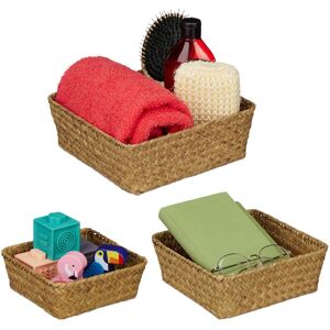 Bring practical and decorative organisation into your home with this set of 3 storage baskets. Whether used as a bathroom basket for cosmetics and towels, a bedroom shelf for socks and underwear or a living room utensil basket, the 3 different sizes of the woven boxes can be used to store all the little things in everyday life. Organisers are made from natural seagrass and have a decorative woven design. Seagrass storage basket in detail - Basket S dimensions H x W x D: approx. 24 x 32 x 23 cm / approx. 400 g - Basket M dimensions H x W x D: approx. 26 x 37 x 27 cm / approx. 650 g - Basket L dimensions H x W x D: approx. 30 x 42 x 32 cm / approx. 760 g - Material: Seagrass - Colour: Natural Versatile woven boxes for more organisation - Decorative baskets for living room, bedroom and bathroom - Ideal for cosmetics and small towels in the bathroom - Made from woven seagrass - Decorative and functional - Sturdy, natural material - Can be stacked inside each other - 3 different sizes to