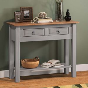 The console table crafted from solid pine and hand waxed to protect, preserve as well as enhance the grain. Finished off with decorative metal fittings which give the item its distinctive Mexican styling and offers that warm rustic country charm. Its tabletop is great to keep snacks and books handy, while the storage shelf is ideal for housing collections to show your unique taste. The drawers are ideal for storing and organizing your small-scale must-haves.This hallway table is perfect to place in narrow places such as entryway, hallway, kitchen, behind sofa, studies, conference room to increase the available space. Borough Wharf Table Base Colour: Brown, Size: 73cm H x 122cm W x 32cm D
