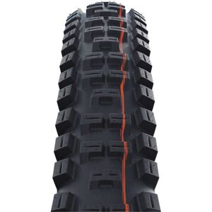 Big Betty is a tyre crafted for a blend of downhill and enduro cycling, particularly effective in dry to damp conditions. It thrives when placed on the rear wheel, complementing Schwalbe's Magic Mary on the front, and boasts advanced tyre technology for optimum performance.Here are some key details about Big Betty:Super Trail: Built with stable construction, this tyre serves a broad spectrum of cycling activities, from all-mountain and trail adventures to enduro rides. It's especially suitable for medium-travel bikes, providing robust support and versatility.Super Gravity: Designed for challenging terrains where both rider and trail test the material's limits. Suitable for bikes with significant travel, offering confidence where the paths are toughest.Long Supported Braking Edges: Provides enhanced braking traction for control in high-speed situations, ensuring reliability when you need to slow down quickly.Stable Shoulder Blocks: These contribute to exceptional cornering grip, allowing you to handle turns with precision and safety.Open and Aggressive Tread: The design not only ensures excellent grip but also facilitates self-cleaning, keeping mud and debris away from the tyre core.TLE - Tubeless Easy Carcass: Features a special monofilament fabric that helps prevent air loss when used with a sealant, making maintenance easier and rides smoother.E-Bike Ready - E-50 Rated: Suitable for e-bikes, ensuring robust performance under the additional torque and speeds of electric bikes.Incorporating Big Betty into your setup ensures you're equipped for diverse terrain, from leisurely trails to aggressive downhills. Its design emphasises safety, performance, and durability, making it a smart addition to any cycling enthusiast's collection.