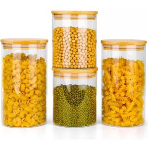 The Neo 4-piece cylinder bamboo and glass food storage set is a stylish and functional way to store a variety of food items, combining the natural beauty of bamboo with the practicality of glass. These cylindrical containers are perfect for keeping your kitchen organized while ensuring the freshness of your ingredients. Each container is made from high-quality borosilicate glass, which is durable, clear, and resistant to thermal shock. The cylindrical shape provides a sleek, modern look while maximizing storage space. The lids are crafted from sustainable bamboo, known for its natural strength and antibacterial properties. Bamboo adds a warm, organic element to the design and is a renewable resource, making it an eco-friendly choice. The bamboo lids feature a silicone gasket that creates an airtight seal when closed. This helps keep food fresh by preventing air and moisture from entering the containers. The flat bamboo lids allow the containers to be stacked securely on top of each