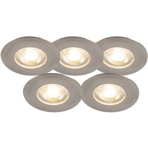 QAZQA Set of 5 Recessed Spotlights Silver 3-Step Dimmable IP44 - Ulo Video Ulo is a timeless modern recessed spotlight that fits perfectly in the living room, bedroom or dining room. It has a diameter of 8.2 cm and a height of 3 cm. The recessed has a diameter of 6.8 cm and a depth of 3.1 cm. The spotlight is made of plastic with a silver look. Ulo comes with non-replaceable LED lighting (max. 5 Watt). It has a value of 2700 Kelvin and 330 lumens, which makes it a real powerhouse! On average, the LED lasts 25,000 burning hours. The lamp is equipped with a 3-step dimmer, with which you can create extra atmosphere in the room. When you push the switch once you get 30% light (mood light), if you push again you get 60% light. The third time you get 100% light (full light). Spotlights are perfect to use as basic lighting and with such a beautiful spotlight as Ulo it is also pleasant to look at. Now extra affordable in a set of 5! Bulb holder: (non replaceable) LED . Max 1 x 5 W, 230 V