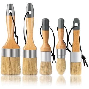 Set of 5 chalk paint and wax brushes for painting and waxing furniture. They provide even paint finishes on flat surfaces or hard-to-reach areas. Natural hog bristles have complete absorption and even release of paints, and they are durable enough to be used on furniture indoors or outdoors. The paint brush set can be used with oil-based or water-based paints, and spread them smoothly and evenly without shedding. Please clean the loose bristles that are not firmly fixed in the stainless steel ferrule before your first use. Please clean the chalk paint and wax brush set after each use with soapy water, then they can be used for a long time.