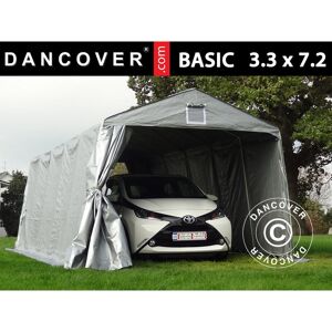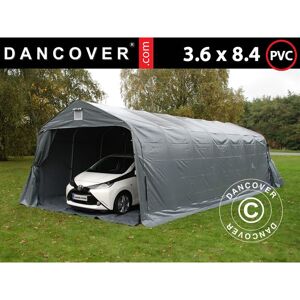 Product specifications: Width: 3.60 m. Length: 7.20 m. Side height: 2.20 m. Ridge height: 2.68 m. Roof material: Strong polyethylene tarpaulin 300 g/m² Sidewalls: Strong polyethylene tarpaulin 300 g/m² Frame: Galvanised steel tubes Tubes / fittings: 32x45x1.2 mm + Ø25x1.0 mm + Ø25x0.8 mm Water resistance: 100% Waterproof Colour: Grey UV-resistant: UV-resistant Included: Stake pegs Construction according to: EN 1090-1:2009+A1:2011 Door Size (W x H): 3,6/3,2x2,10 m. Economical and flexible solution Secure storage for your car and other stuff Hardwearing, waterproof canvas Plenty of headroom 2 doors secures easy access 2 air vents for effective airflow UV-resistant canvas Portable garages are flexible and perfect for a number of storage solutionsPortable garages are flexible and protect your car against rain and sleet. At the same time, it works perfectly as a storage tent for everything you need to put away from the elements – garden machines, bicycles, trailers, building materials and
