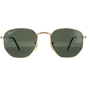 Hexagonal 3548N 001 Gold Green are a very unique hexagonal shaped frame and feature the latest flat crystal lenses for an updated version of the classic metal round sunglasses. Super thin temples and coined profile to the frame finish the modern fashionable look. Ray-Ban Unisex Square Gold Green Hexagonal 3548N Sunglasses