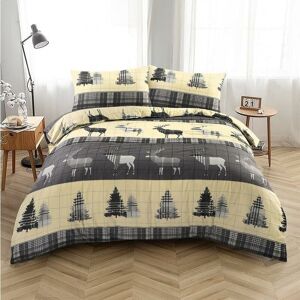 Add a touch of warmth to your bedroom in the cold winter with this soft flannelette duvet cover set. This duvet cover features classic tartan stag and fur tree design on printed on cosy 100% brushed cotton bedding fabric. The brushed cotton fabric ensures this bedding is soft, durable and breathable. This elegant design in contrasting colours would make an attractive addition to any bedroom. All sets include pillowcase(s). Kingsize duvet cover (220x230cm) and two pillowcases (75x50cm). Material composition: 100% Brushed Cotton. Care instructions: Machine Washable, can be tumble dried.