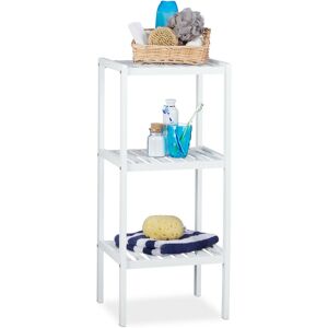 With this freestanding bamboo rack, you can finally organise your bathroom, kitchen or hallway. The 3 shelves provide ample space for towels, books, shoes, etc. The bookcase is perfect for small spaces thanks to its compact size. The open shelves allow you to quickly grab your towels, cosmetics and other bathroom supplies. The bright white is also ideal for the children’s bedroom or playroom. Toys and stuffed animals will no longer clutter the floor and kids will love the colourful design. Details on the Bamboo Bath Rack with 3 Shelves • Total size: HxWxD: ca 80 x 34.5 x 33 cm • Size per compartment: HxWxD: 31.5 x 31.5 cm • Distance between shelves: ca 27.5 cm • Distance to floor: ca 18.5 cm • With 3 shelves (max. capacity per shelf: 10 kg) • Made entirely out of bamboo, lacquered white • Weight: ca 2.4 kg Shelving Unit for the Bathroom, Kitchen, etc. • For the bathroom, kitchen, basement, pantry, etc. • Store your bathroom supplies, towels, kitchen utensils, etc. • Ample storage