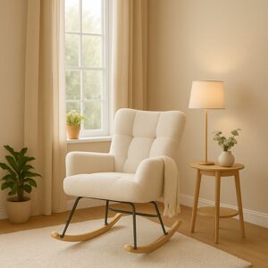 Upgrade your home with this elegant bouclé rocking chair, designed to bring both style and comfort into your space. Upholstered in ultra-soft bouclé fabric, it delivers a cozy and inviting feel, making it perfect for relaxation. Whether you're reading a book, rocking your little one to sleep, or simply unwinding after a long day, this chair provides the perfect spot to sit back and enjoy. The high backrest, padded armrests, and thick seat cushion ensure ergonomic support, making it a must-have for anyone seeking ultimate comfort. Its gentle rocking motion, supported by a sturdy metal frame and solid wood base, provides a soothing and relaxing experience. With its chic and modern design, this rocking chair blends effortlessly into any living room, nursery, or reading nook, adding a touch of elegance to your home. Built with premium materials, it guarantees durability and long-lasting use. Norden Home Colour: Beige