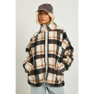 Oversized teddy jacket featuring a striking check pattern for standout style Cosy high neckline with full zip closure for adjustable warmth Practical side pockets perfect for keeping essentials close at hand Relaxed, roomy fit designed for layering over your favourite autumn pieces Soft teddy texture adds dimension and tactile interest to your casual wardrobe Make a statement in this bold check oversized teddy jacket that combines comfort with on-trend style. The relaxed silhouette offers ample room for layering over jumpers and tees, while the full-length zip allows for versatile styling options. As seen on our model, pair with light wash wide-leg jeans and a simple white tee for an effortlessly cool weekend look, or throw over a hoodie with trainers for coffee runs and casual gatherings. The textured teddy fabric provides welcome warmth for chilly autumn days, making this the perfect companion for outdoor events, family gatherings, or casual meet-ups with friends. Complete the look with a cap and minimal accessories for an understated yet fashionable ensemble that works for daytime errands or laid-back evenings. This Boohoo jacket embodies casual cool with its contemporary oversized proportions and distinctive check pattern.