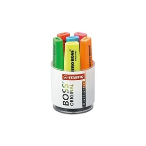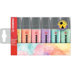 The Stabilo Boss Original is Europe's best selling, most popular highlighter. With a distinctive shape and pastel colours, it is a high quality highlighter that writes further, lasts longer and will not dry out. The wedge shape tip can be used to draw broad and fine lines, making it perfect for highlighting, underlining text and even colouring. The Anti Dry Out Technology means the cap can be left off for up to 4 hours and the super bright colours will not fade. This pack contains 4 assorted pastel colours of hint of mint, pink blush, touch of turquoise and lilac haze.