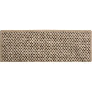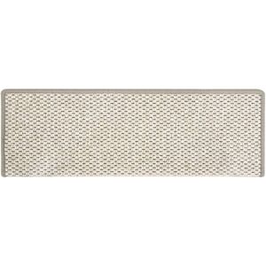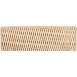 These stair mats will not only make a striking decorative addition to your home decor. but also protect you from slipping when going up and down stairs and keep your stairs from becoming scuffed. These mats are made of strong fabric with a sisal look. so they are sound dampening. nonslip. warm and comfortable. These stair rugs are also washable and are folded to protect both the top and the front of the stairs. The adhesive tapes on the back allow these mats to be attached to the stairs easily and quickly. Hykkon Tread Size: Semi-Circle 21cm x 65cm, Colour: Dark Beige