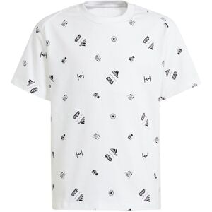 The adventure is yours in a galaxy far, far away.This adidas x Star Wars tee lets you show your allegiance to the light side.Whimsical graphics scattered across the front evoke a sense of adventure, while soft cotton means comfort whether you´re building a droid or just hanging out in the backyard.Get lost in imaginative stories of good vs.evil with this stylish top.The cotton in this product has been sourced through Better Cotton.Better Cotton is sourced via a chain of custody model called mass balance.This means that Better Cotton is not physically traceable to end products.FEATURES:-Regular fit.Ribbed crewneck.-93% cotton, 7% elastane single jersey.-Star Wars metallic graphic print on front and back.-© and ™ Lucasfilm Ltd.All Rights Reserved.-Wash & Care:-Do not bleach.-Use mild detergent only.Wash with like colors.-Touch up with cool iron.-Do not dry clean.-Machine wash cold.