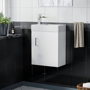 Specifications Vanity Cabinet Style: Contemporary Height: 781 mm Width: 400 mm Depth: 220 mm Unit Type: Basin Vanity Unit Material: MDF Handles: Exposed Door Hinges: Soft close Basin Included: Yes Basin Finish: White Basin Material: Ceramic Tap Hole: Single Overflow: Yes Mounting Type: Free standing Tap & Waste: separately Toilet Material: Vitreous china Finish: Gloss White Height: 400mm Width: 350mm Projection: 480mm Seat type: Slim soft close Fittings: UK standard size Guarantee: 10 years Package Contents Vanity Unit Basin Back to wall toilet WC Unit Toilet pan fittings Concealed cistern Excludes basin tap and waste