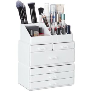 This handy makeup organizer will save you the search for needed items and finally restore order to your place. The three-part makeup stand provides ample storage space with a total of 22 compartments for cosmetics and jewellery. The drawers are suitable for creams, powders and eyeshadow, as well as watches, necklaces and bracelets. The handy lipstick holder can also be used for nail polish, brushes and much more. Create and customize your own makeup kit with this stacking cosmetics stand! Cosmetic Organiser with 6 Drawers Details - H x W x D: approx. 29 x 23.5 x 14 cm - 3-Piece set - 2 Boxes with 3 drawers each - 1 Organiser top with 16 compartments - Weight: approx. 2 kg - Material: Acrylic Cosmetic Organiser Dimensions - 1 x Large drawer: H x W x D: 6 x 21 x 12.5 cm - 3 x Narrow drawer HxWxD: 3 x 21 x 12.5 cm - 2x Small drawers: H x W x D: 3 x 9.5 x 12.5 cm - 1 x Large compartment: H x W x D: 7.5 x 10 x 9 cm - 1 x Narrow compartment: H x W x D: 3 x 10.5 x 3.5 cm - 2 x Medium